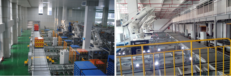 辊式输送机上装有大直径钢辊子,辊子为镀锌(不锈钢)辊筒。每个辊子靠一对封闭式润滑球轴承支撑滚动。每台辊式输送机由一台电机减速机驱动。电机安装在一个预置的底座上,与输送机的钢结构形成整体,并被固定于回转方向链条的下方。电机减速机通过链轮带动相互套链的辊子按照预先设计的速度旋转,从而带动辊子上托盘货物的运动达到输送托盘货物的目的。