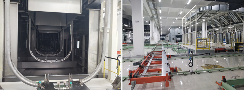 吉利张家口涂装承担着CMA平台轿车及SUV车身的涂装生产任务,该车间生产CMA平台车型,承担中、高档轿车车身及其备件表面涂漆、防声、装饰及防腐任务。本工程范围包括涂装车间所有的输送系统以及与此相关的机械、电气、控制功能。要求必须提供高质量设备以满足甲方高质量和环境目标。未来产品设备的柔性化生产也在考虑之内。系统设计要保证20年以上的使用寿命。输送形式为:前处理、电泳为摆杆输送线;其它为滑橇输送线